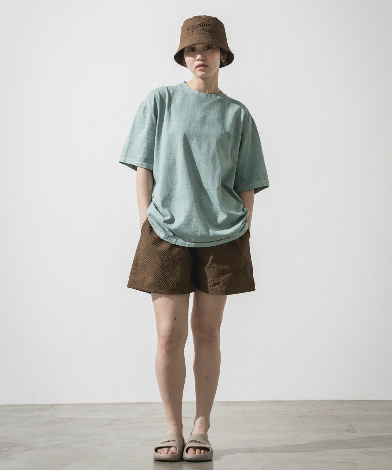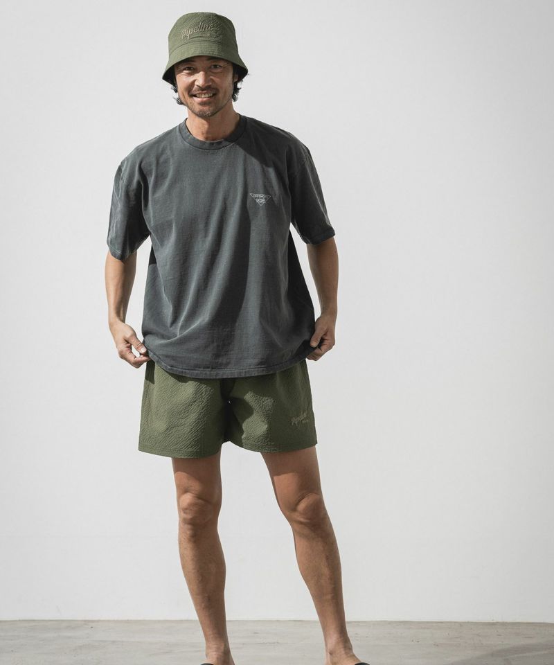 フロントに刺繍でデザインされた「PIPE LINE」はハワイ・オアフ島のノースショアを代表するサーフポイントで、1980年代にハワイで行われたPIPE MASTERSのスポンサーでもあったオフショアとゆかりがあるデザインに。