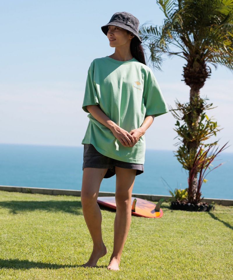カリフォルニアらしい"ゆるり"とした愛らしいグラフィックをベースにリラックス感ある一枚です。《生地・着心地》