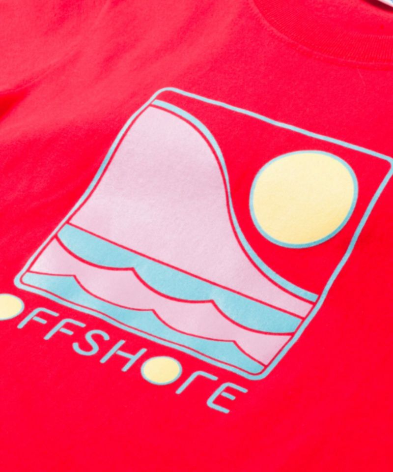 第一弾はオフショア定番ロゴのプリントティーシャツ。