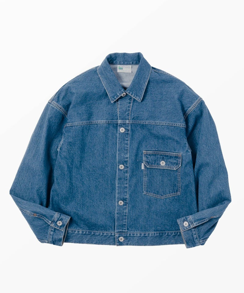 デニムジャケット特有の短丈ではないため、ボトムスやインナーとのバランスも取りやすく、ラフに羽織れるのも魅力。
