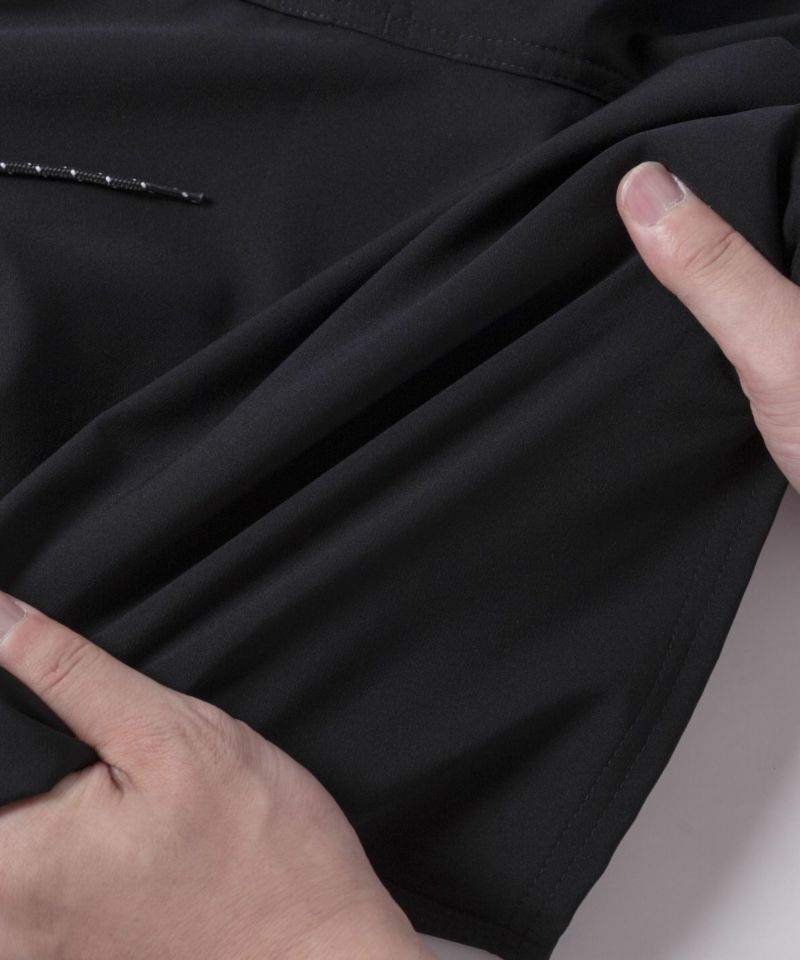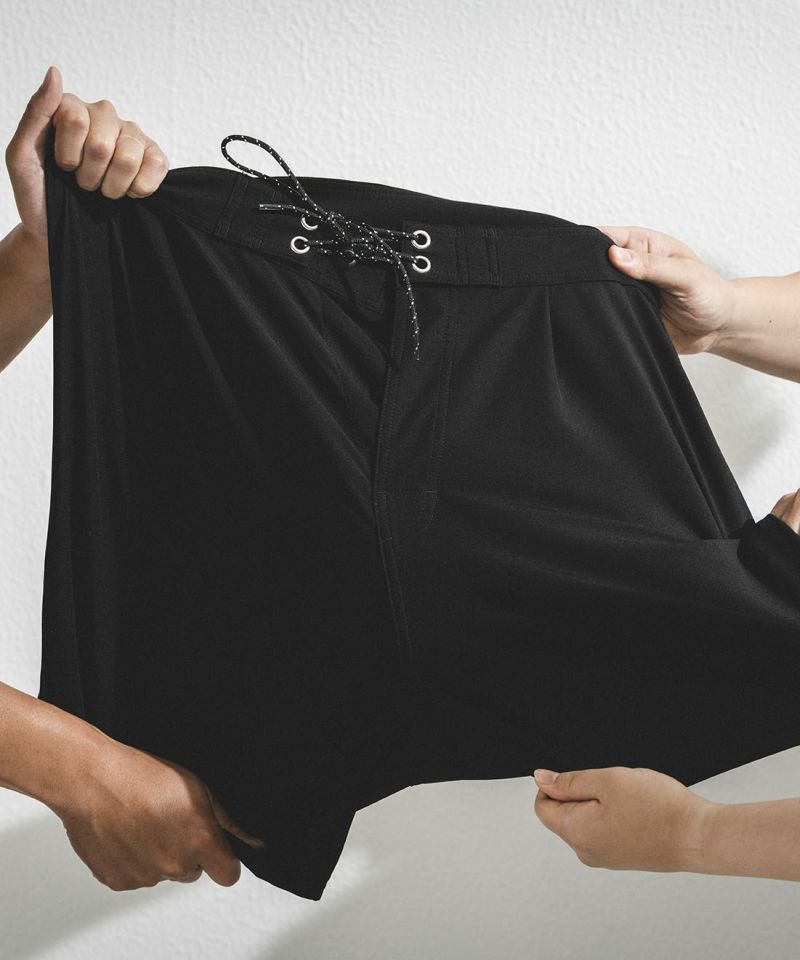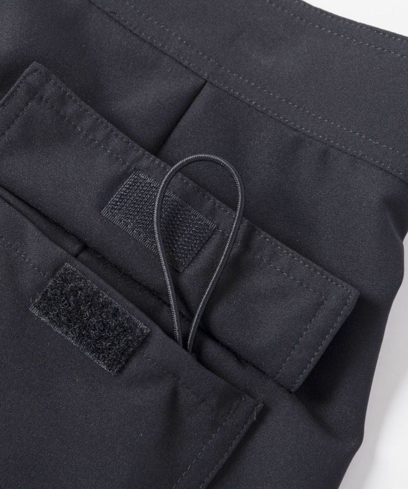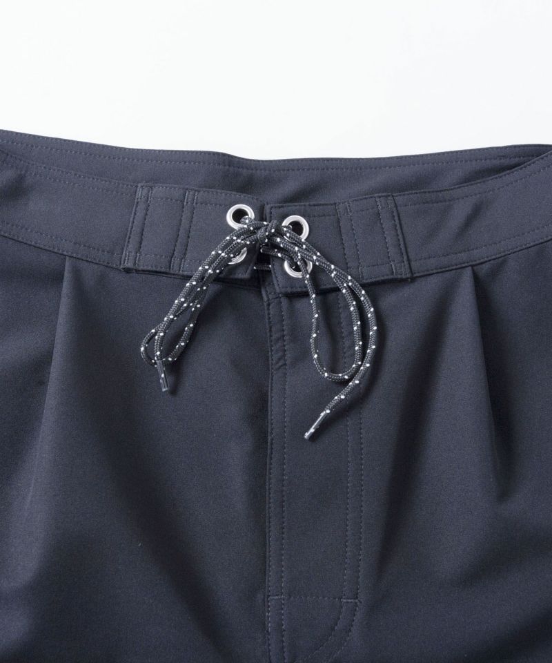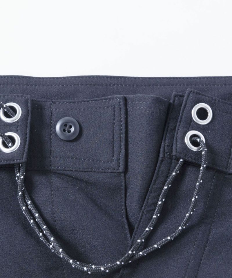 伸縮性ある生地を採用しさらにウエストにタックを入れたことにより、大幅に可動域を広げることが可能となり、サーフィンなどのアクティブシーンでも腰周り、太ももへの負担や生地の張り感を解消。